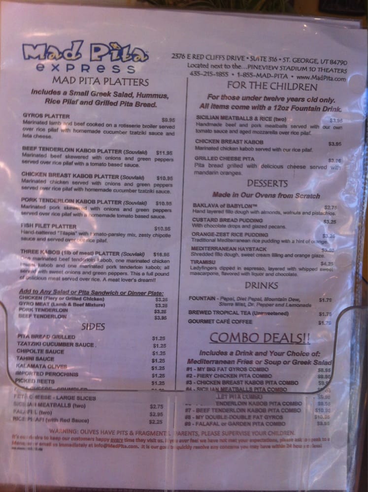Mad Pita Express Menu